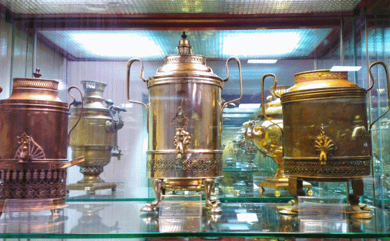 Экскурсия в музей самоваров. Путешествие в мир самоваров начинается с самых истоков. Вы увидите сбитенник — прародителя самовара, который уже имел внутреннюю жаровню, но сохранял черты обычного чайника. Здесь же представлены первые самовары, созданные легендарными мастерами Лисицыными — родоначальниками тульского самоварного дела. В залах музея вы познакомитесь с историей знаменитых династий — Баташевых, Шемариных, Фоминых, а также откроете для себя настоящую сокровищницу самоварного искусства. Здесь можно увидеть: самовар-рекордсмен невероятных размеров, внутри которого размещена целая мини-экспозиция, детские самоварчики, подаренные семье Николая II, уникальный самовар «Флорентийская ваза», оригинальный «Терем» необычной формы. Экскурсия не ограничивается только самоварами. Отдельный зал воссоздает атмосферу кондитерской известного тульского мастера П.И. Козлова. Вы увидите: редкие чайные сервизы, старинные чайные принадлежности, необычные формы сахара, специальные щипцы для колки сахара.