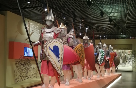 Отправление на Куликово поле. Экскурсия в музее Куликовской битвы. Здесь, среди древних предметов и ярких картин, оживает «Сказание о Мамаевом побоище» — история о мужестве, дружбе и великой победе. Экспозиция выстраивает перед зрителем последовательную картину событий, где каждое изделие, каждая деталь несут в себе отголосок той судьбоносной осени. Приглядитесь к доспехам и оружию. Вот тяжёлая кольчуга — попробуйте прикинуть, сколько она весит! Рядом меч — не игрушечный, а настоящий, каким сражались ратники. Можно осторожно потрогать реплики копий и щитов, представить, каково это — идти в бой, чувствуя на плечах тяжесть брони, слыша звон мечей и крики товарищей. Особое место занимает макет, передающий топографию Куликова поля. Перед глазами возникают очертания рек, балок и лесистых участков, которые определили тактику сражения. Взгляд скользит по миниатюрным фигурам воинов, выстраивающихся в строй, по знамёнам, колышущимся над полками. Так, шаг за шагом, складывается понимание: победа была достигнута не слепым случаем, а точным расчётом, знанием местности и слаженностью действий. Но Куликовская битва — это не только сражение. Это ещё и история о дружбе и единстве. Князья из разных городов забыли про споры и объединились, чтобы защитить родную землю. Они стояли плечом к плечу, зная: победа возможна только вместе.