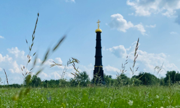 Экскурсия на Красном холме Куликова поля. Именно отсюда, с этой высокой точки, шесть с лишним веков назад ордынский военачальник Мамай наблюдал за полем битвы. В центре холма - высокая чугунная колонна с золотым крестом наверху, памятник в честь благоверного князя Дмитрия Донского. Рядом с колонной — храм памятник преподобного Сергия Радонежского, великого святого, который благословил русское войско перед битвой.
